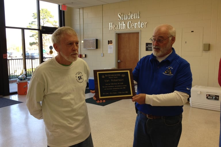 Van Robertson being inducted into the Hall of Fame by Larry Toler